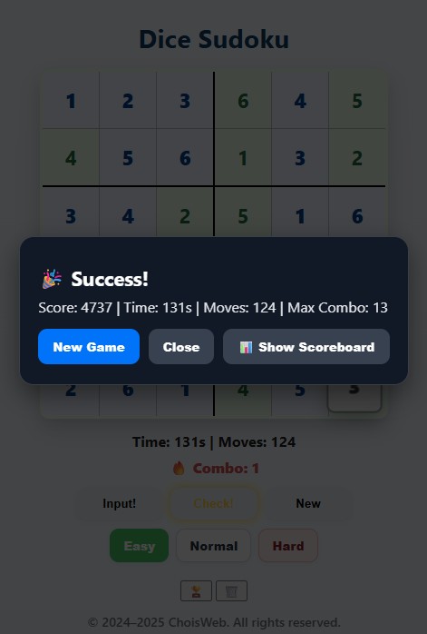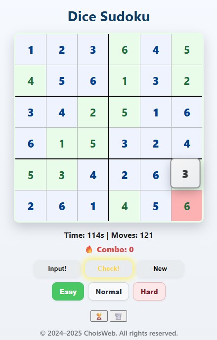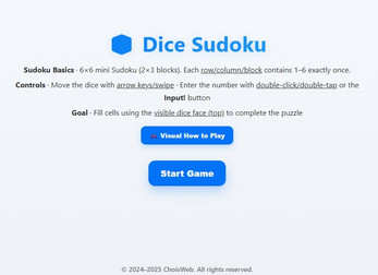 Dice Sudoku is a new twist on classic Sudoku — you don’t just fill numbers, you roll a 3D dice across the 6×6 board.